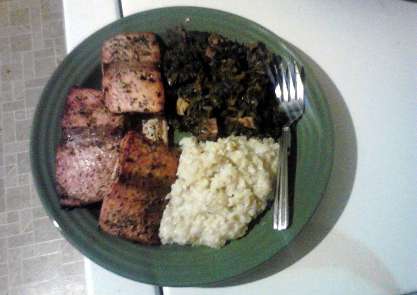 - mix together the garlic powder, Basil, and salt in a small bowl; rub equal amounts onto the salmon fillets.